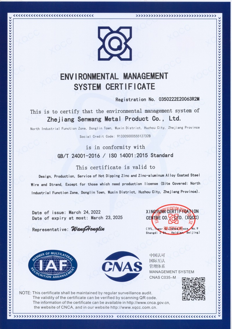 浙江森旺金屬制品有限公司成立于2012年,坐落湖州市吳興區(qū)東林鎮(zhèn)工業(yè)功能區(qū)。公司專業(yè)從事各類鍍鋅鋼絲、鋼絞線等產(chǎn)品的開發(fā)及生產(chǎn)。目前產(chǎn)品已廣泛應(yīng)用于各類通信光電纜,電力輸送,電氣化鐵路工程,各類堤壩防護(hù)及農(nóng)業(yè)溫室等工程領(lǐng)域。公司秉承“追求卓越品質(zhì),創(chuàng)建卓著信譽(yù)”的經(jīng)營理念,始終堅(jiān)持專業(yè)化、規(guī)模化的經(jīng)營模式。